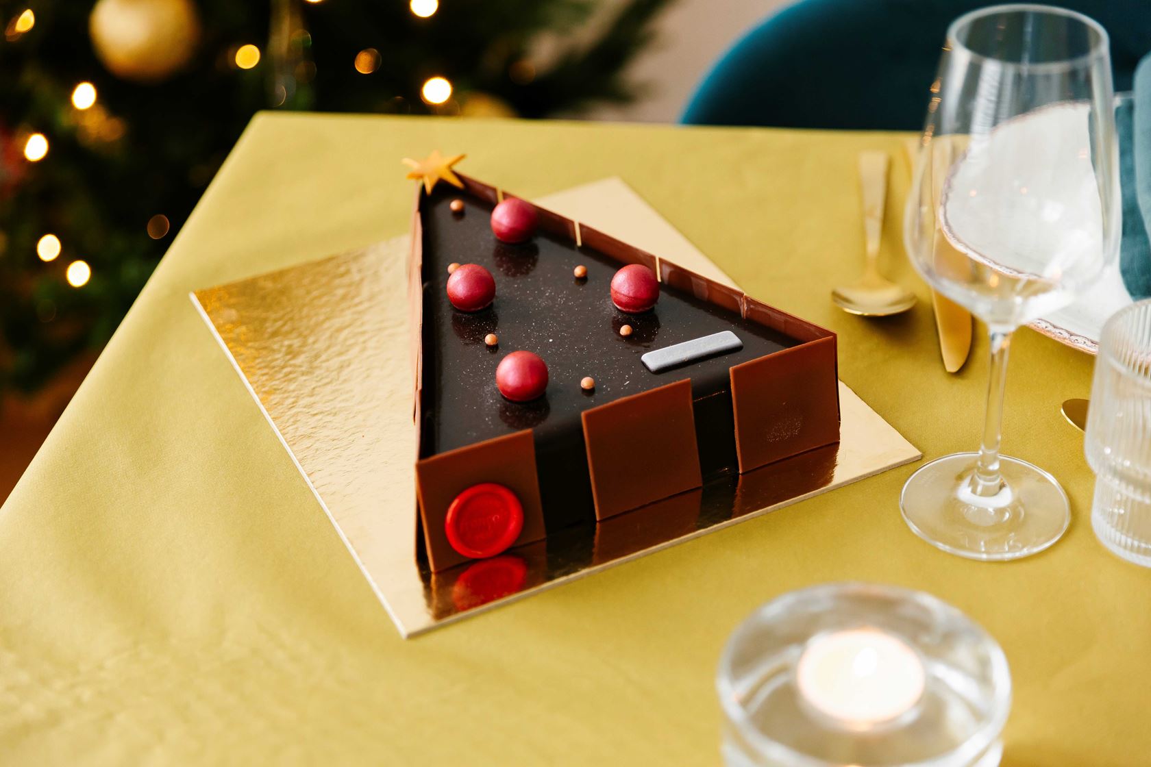 Kerstmuts ijstaartje vanille/frambozensorbet